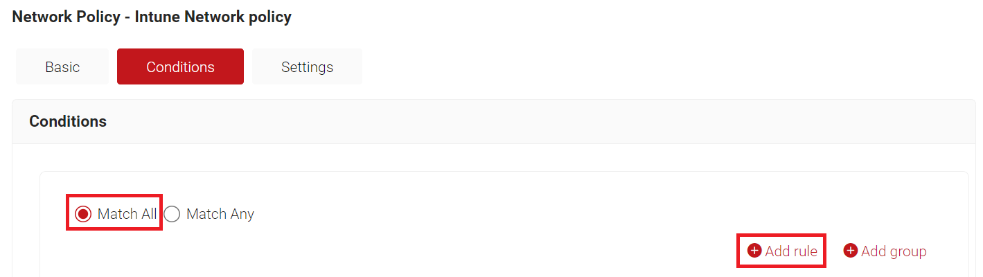 - Select Match All or Match Any based on your requirements to set authentication criteria.