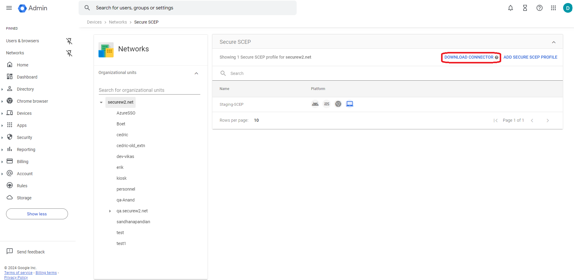 - Navigate to Devices> Networks > Secure SCEP.