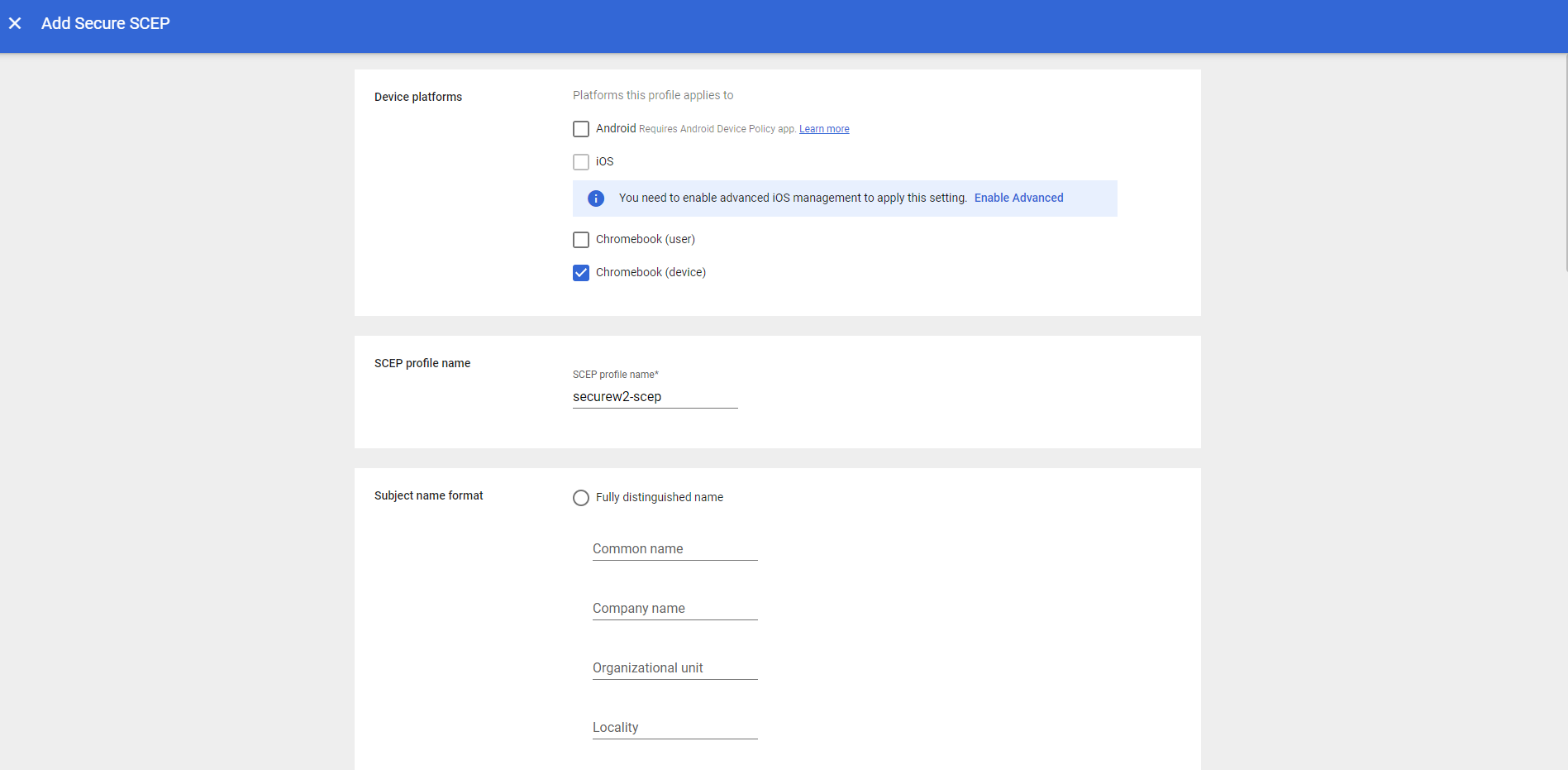 Configuring SCEP Profile in Google Console