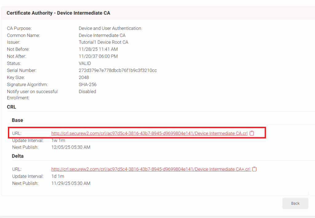 - SecureW2 generates and manages your CRL so that you don’t have to, all we need to do is upload the CRL URL to our RADIUS.
