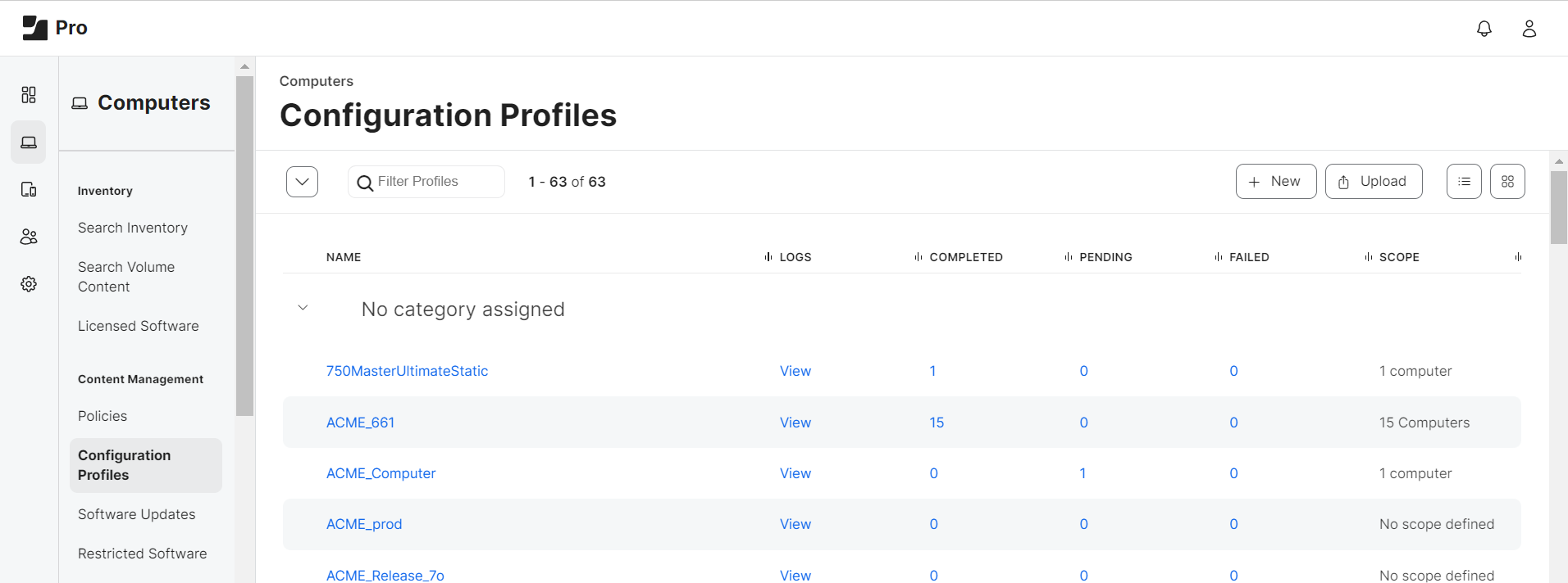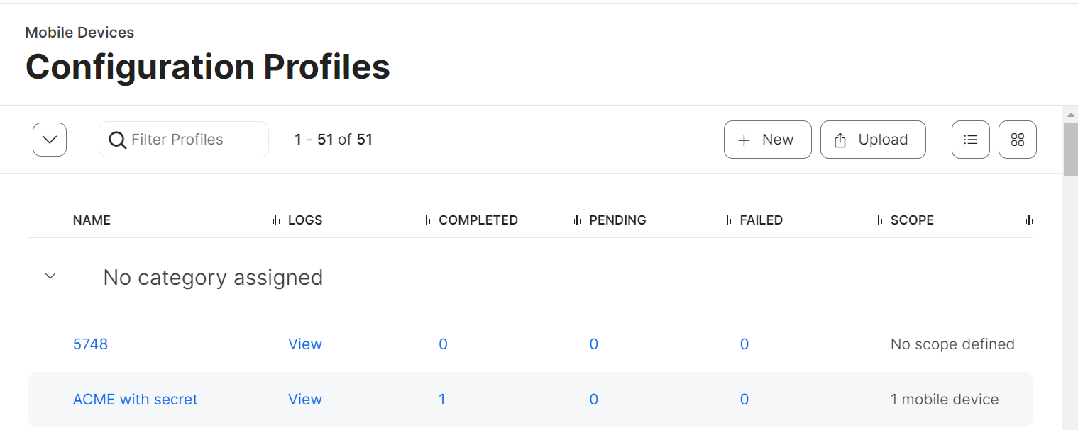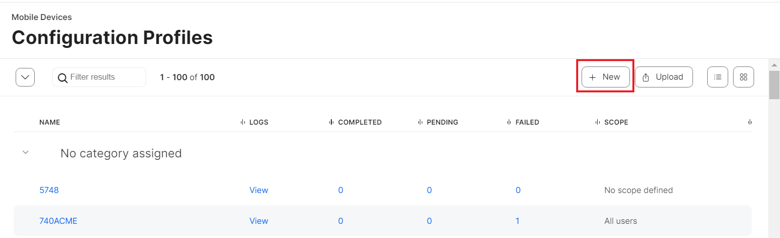 NOTE: Devices refer to creating configuration profiles of iOS Mobile devices and iPad. For mac OS, upload Mobileconfig via Computers > Configuration Profiles.