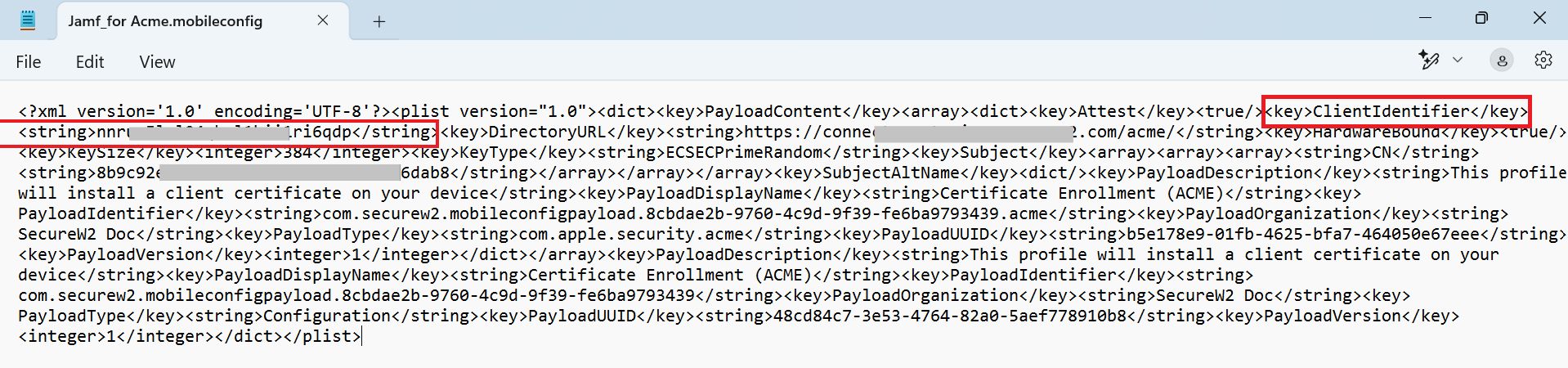 - In the Client Identifier field, enter the value corresponding to “ClientIdentifier” in the .mobileconfig file.