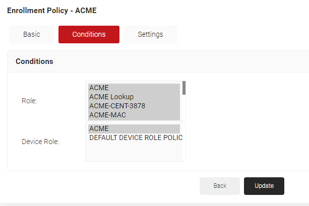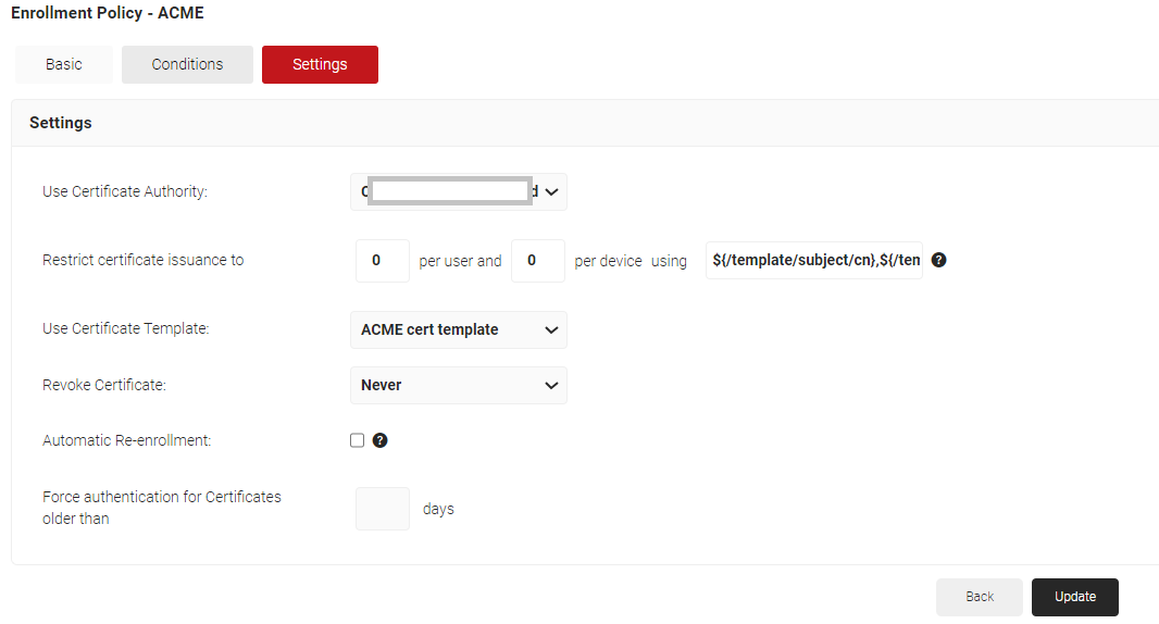 - From the Use Certificate Authority drop-down, select the Certificate Authority created for ACME.