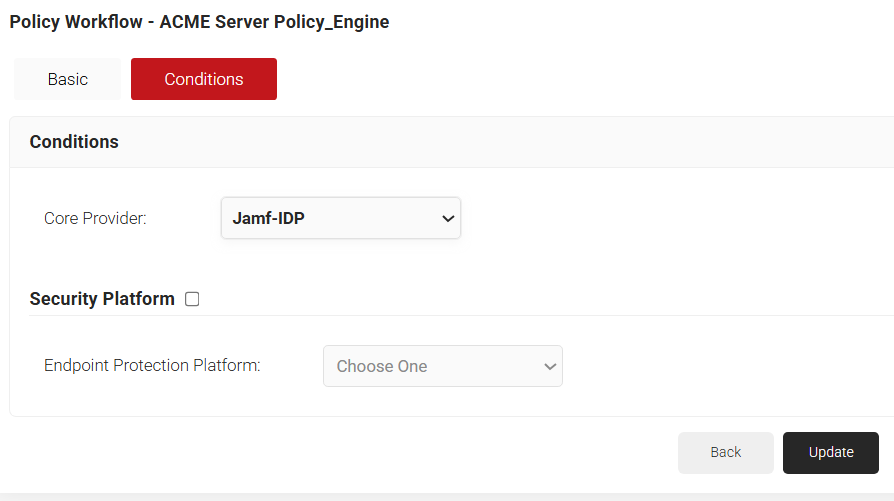 - In the Conditions section, click the Core Provider drop-down and select the Identity Lookup Provider you created in the earlier section.