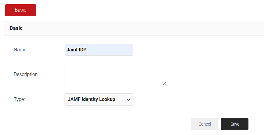 - From the Type drop-down list, select Jamf Identity Lookup.