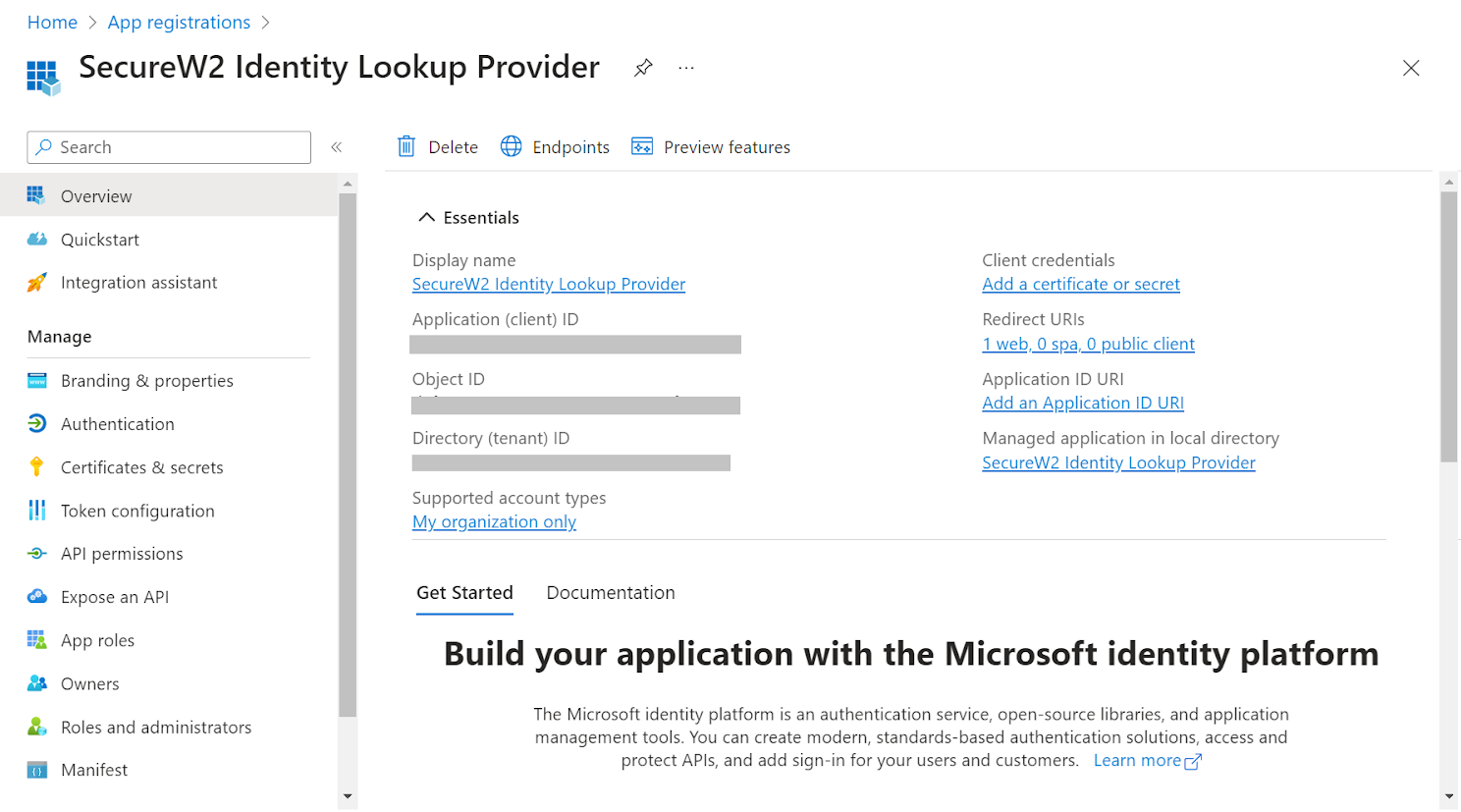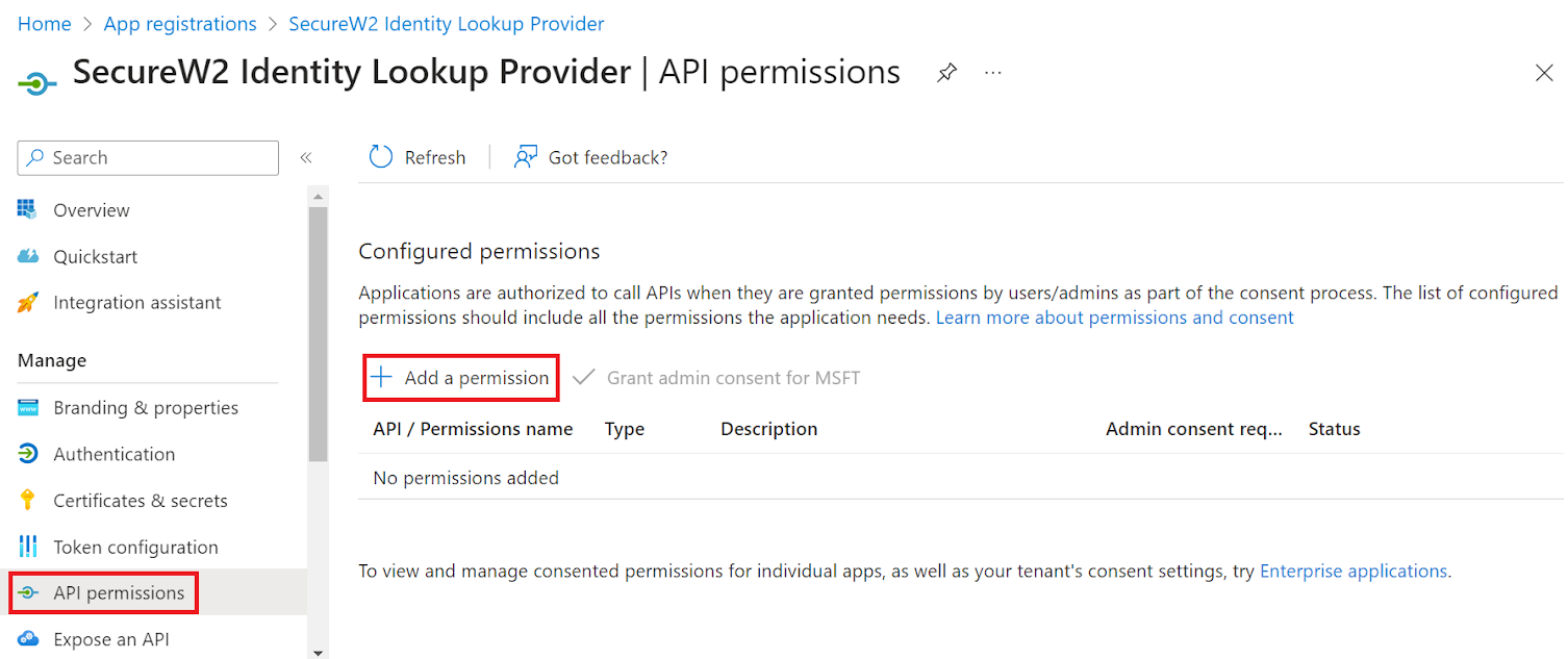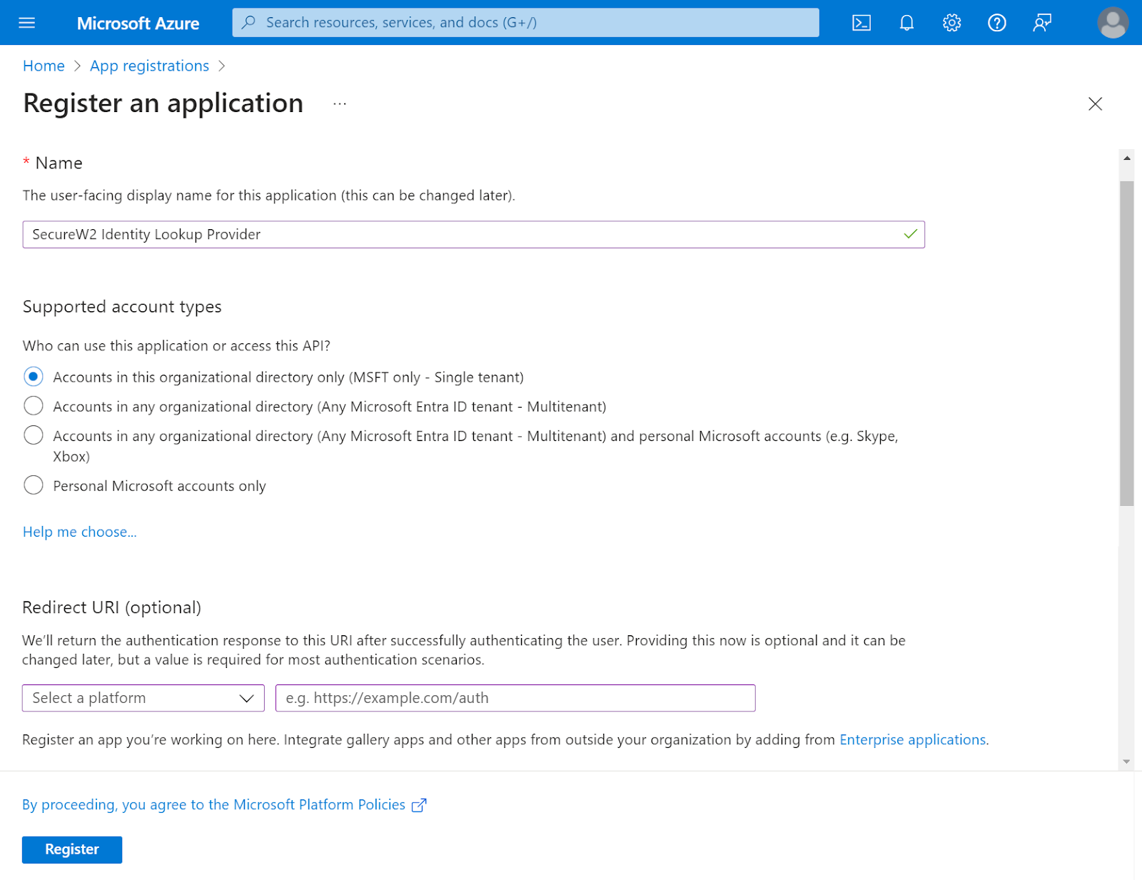 After creating an App in Azure, you need to create an Identity Lookup Provider in SecureW2 to communicate with Azure.