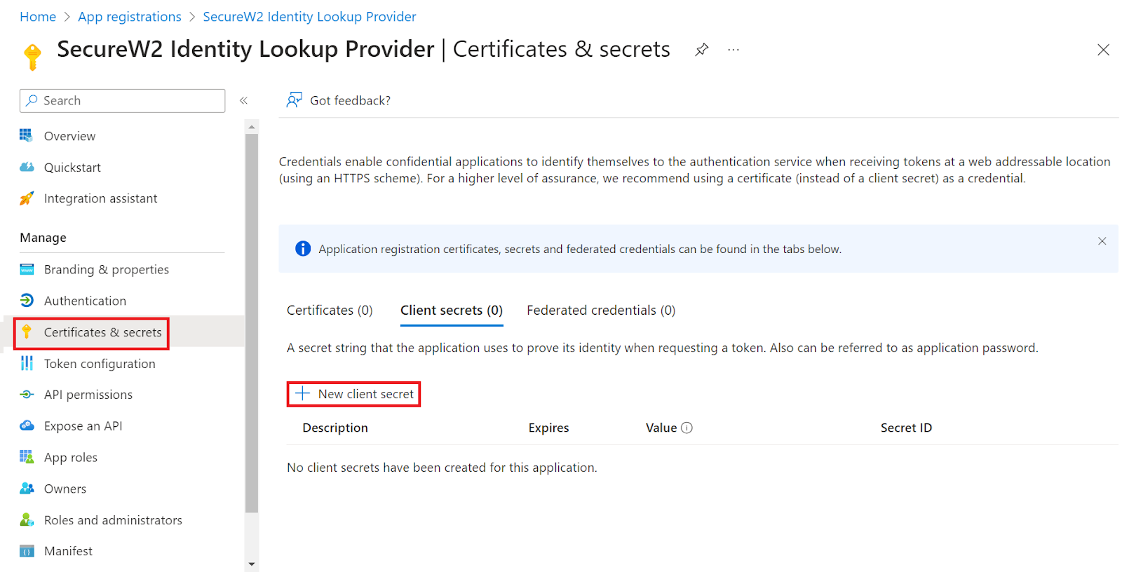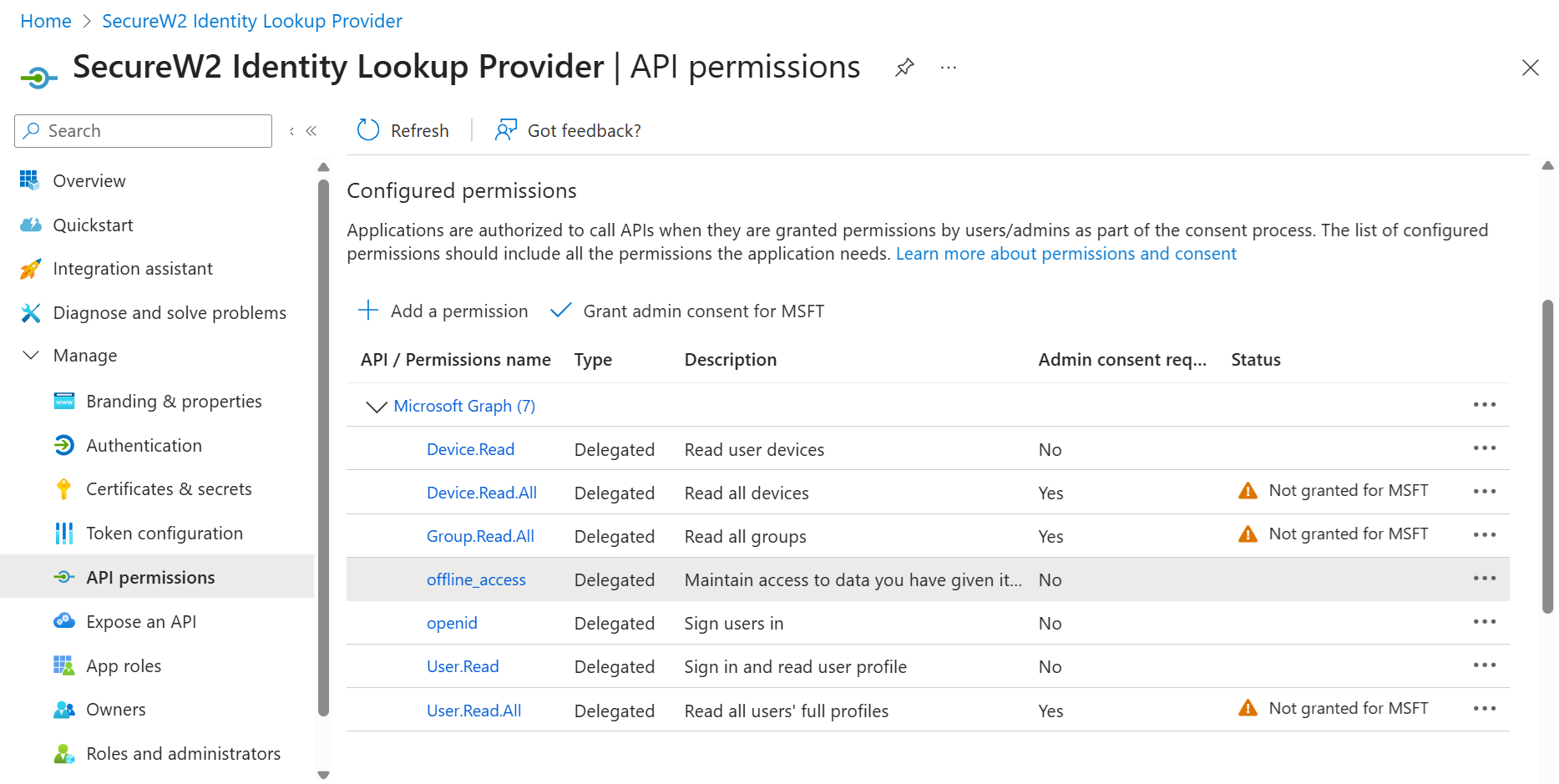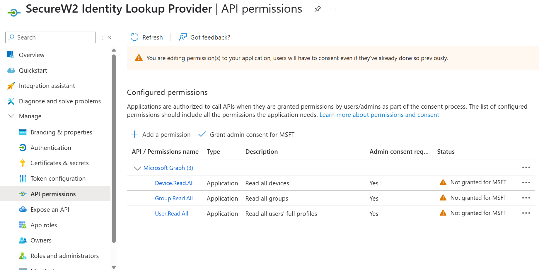 After creating an App in Azure, you need to create an Identity Lookup Provider in SecureW2 to communicate with Azure.