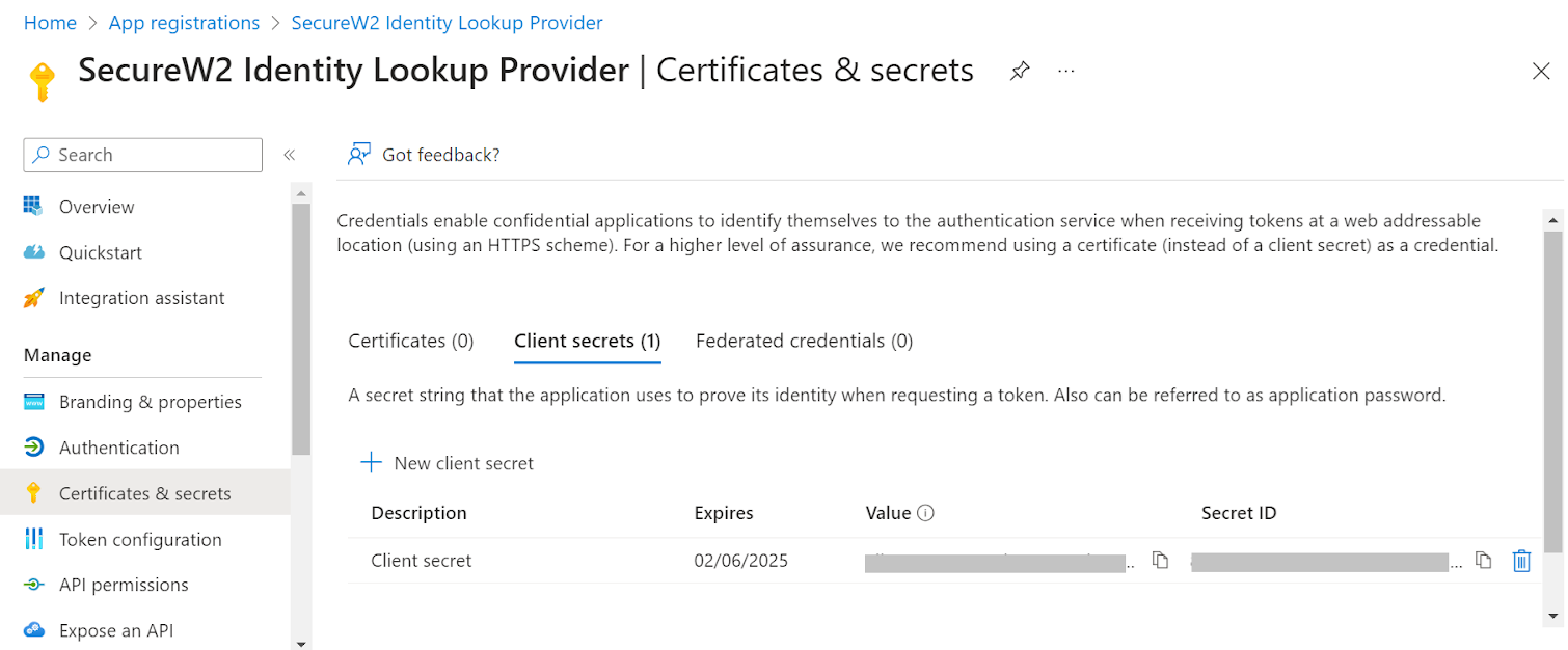 - In the Client Secret field, enter the Client secret you generated in the Azure Portal earlier (refer to the Creating a Client Secret section).