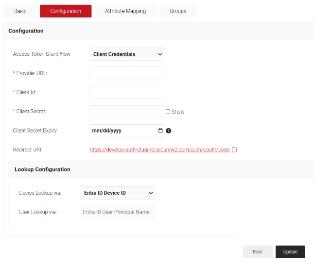 - The page refreshes and displays the Configuration, Attribute Mapping, and Groups tabs.