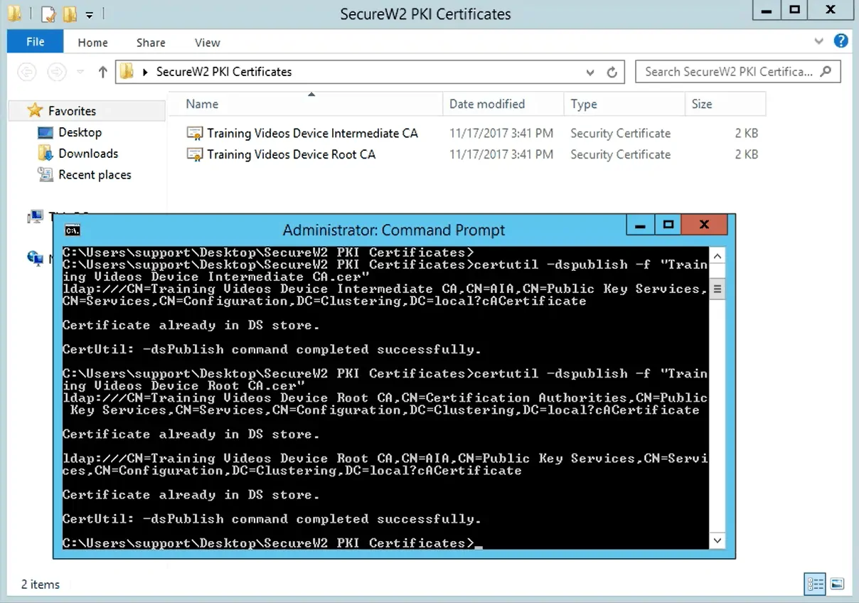 Certutil -dspublish -f "C:Training Videos Device Intermediate CA.cer"