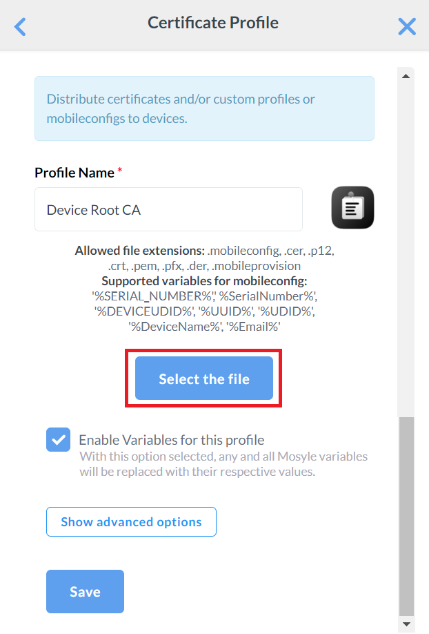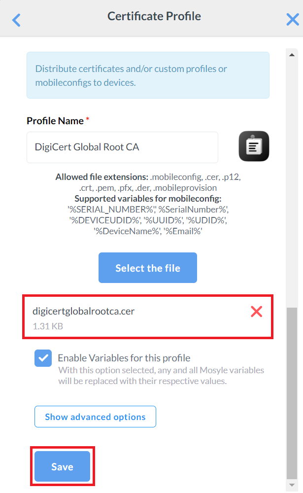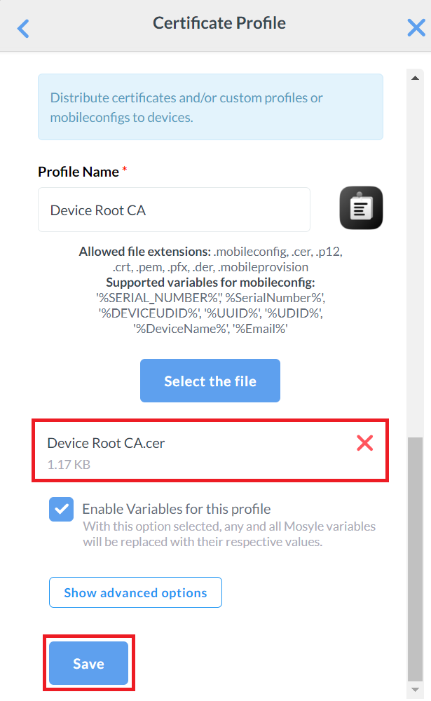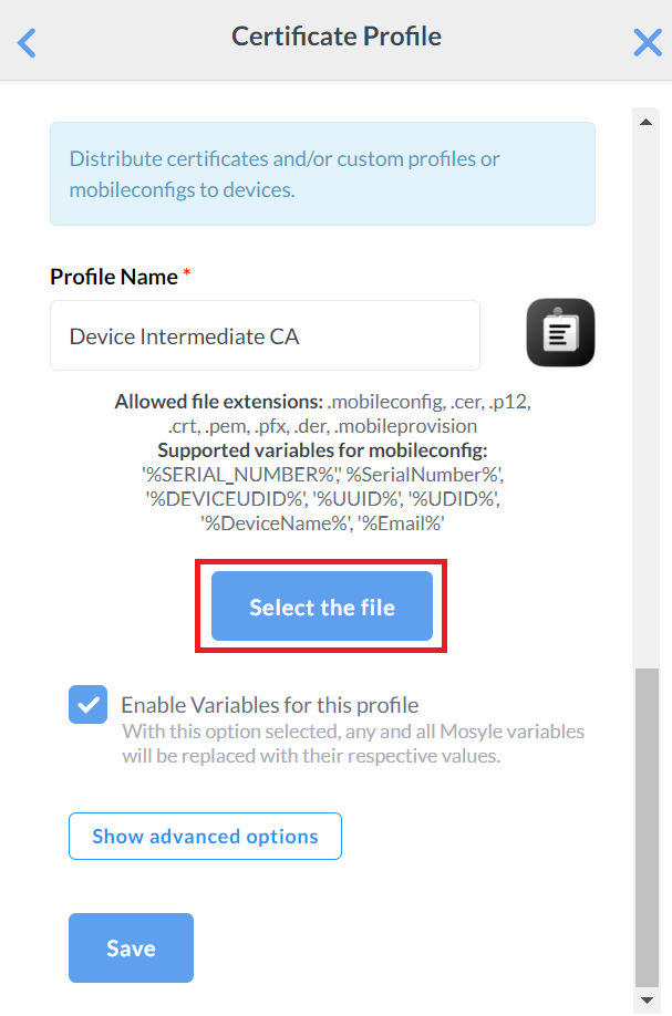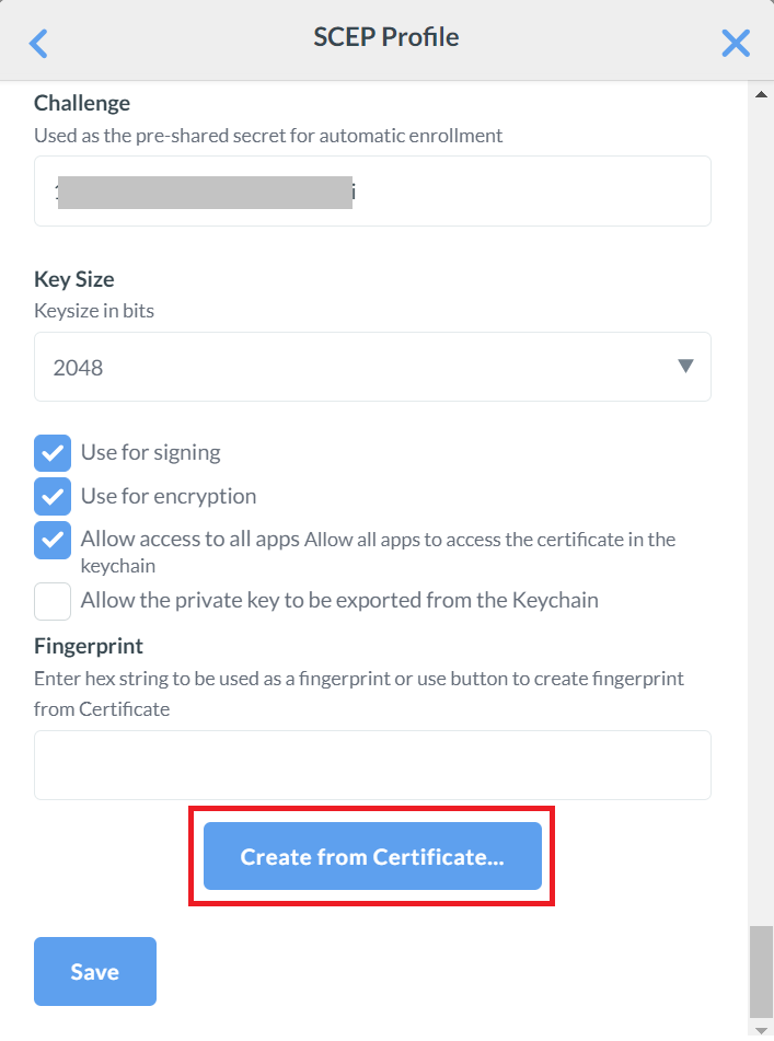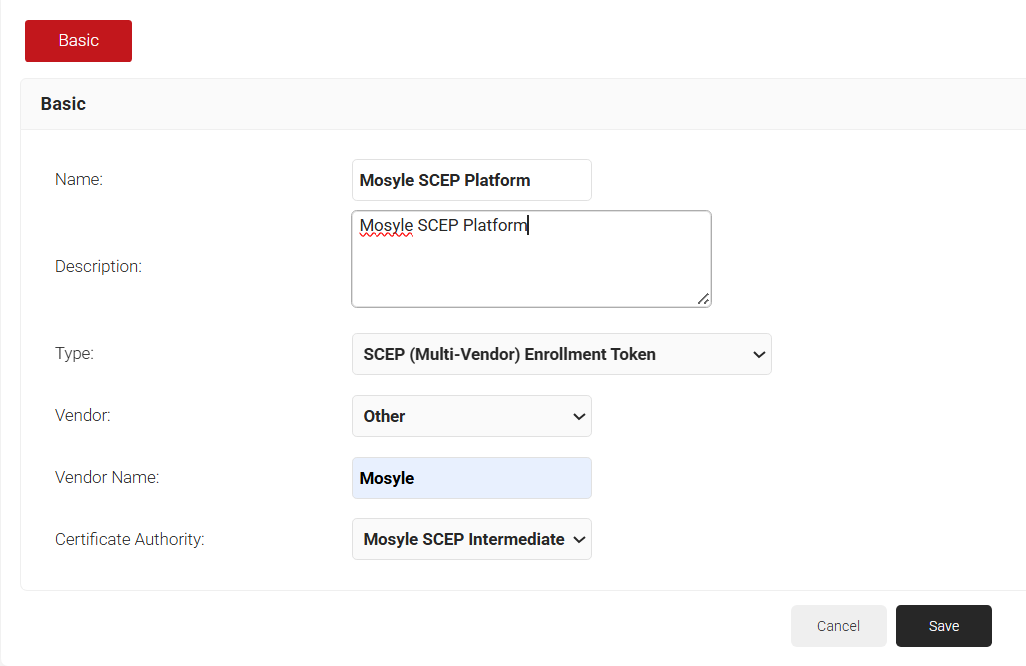 - Ensure that the SCEP profile is configured accurately. For more information, see the Creating an Intermediate CA for Mosyle SCEP Gateway Integration section.