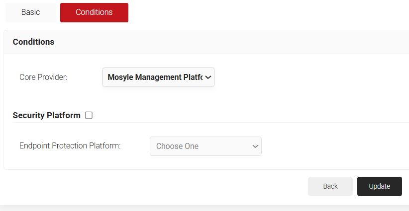 - In the Conditions section, from the Identity Provider drop-down list, select the Mosyle API Token created earlier (see the Generating a SCEP URL and Secret section).