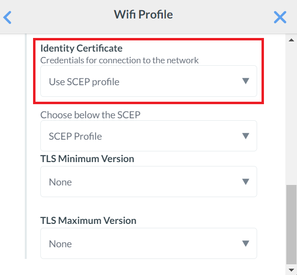 - From the Identity Certificate drop-down list, select Use SCEP profile.
