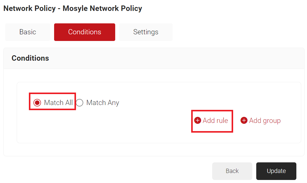 - Select Match All or Match Any based on your requirements to set authentication criteria.