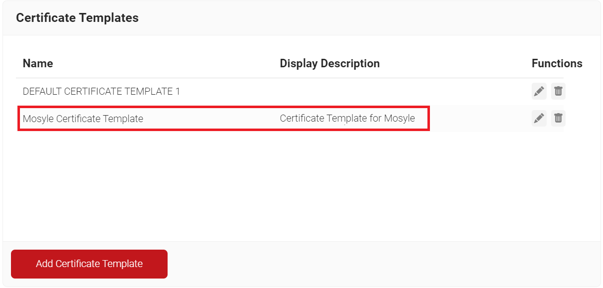 - Scroll to the Certificate Templates section and click Add Certificate Template.