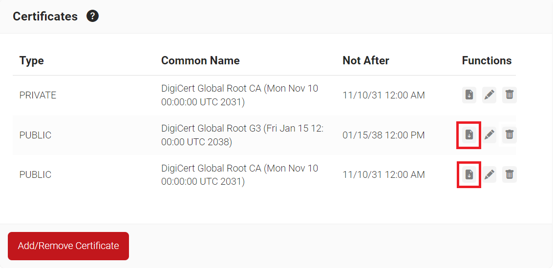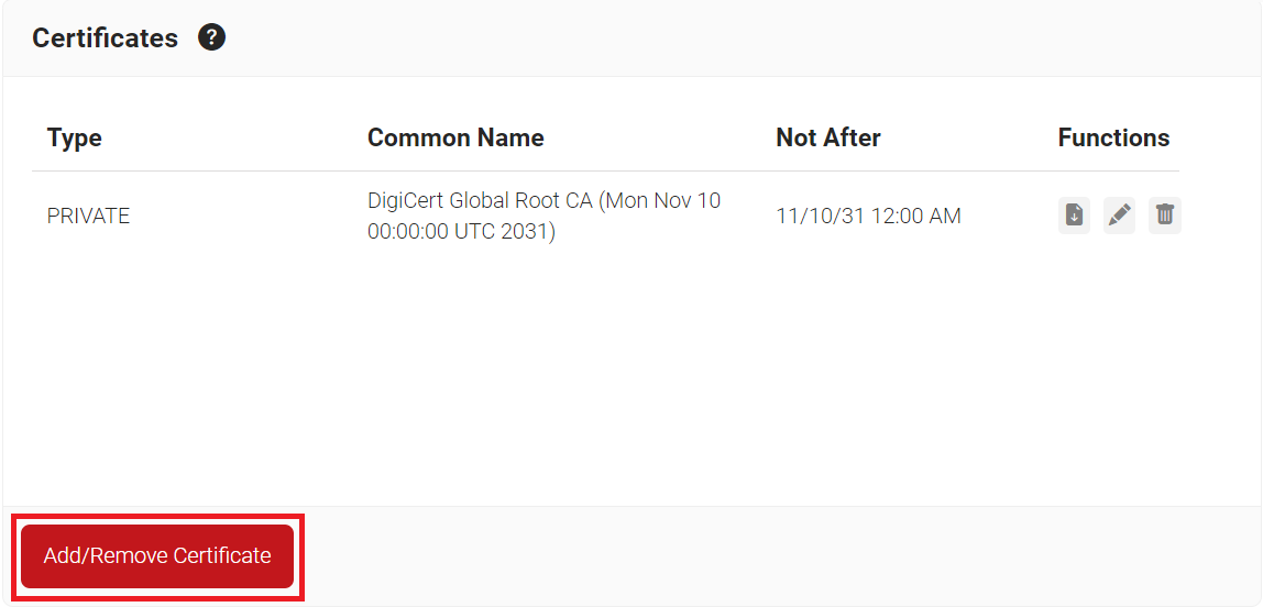- Scroll down to the Certificates section and click Add/Remove Certificate.