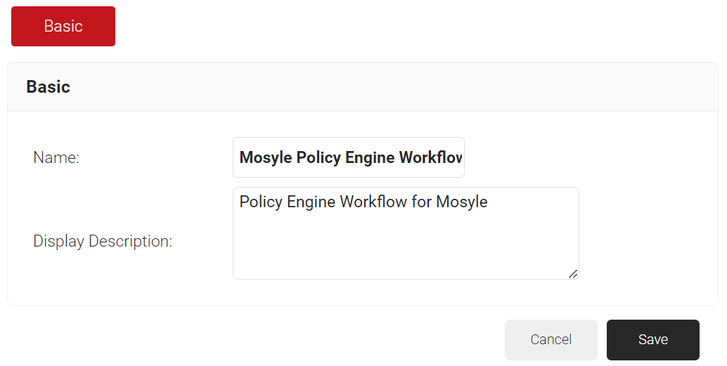 - In the Basic section, enter the name of the Policy Workflows in the Name field.