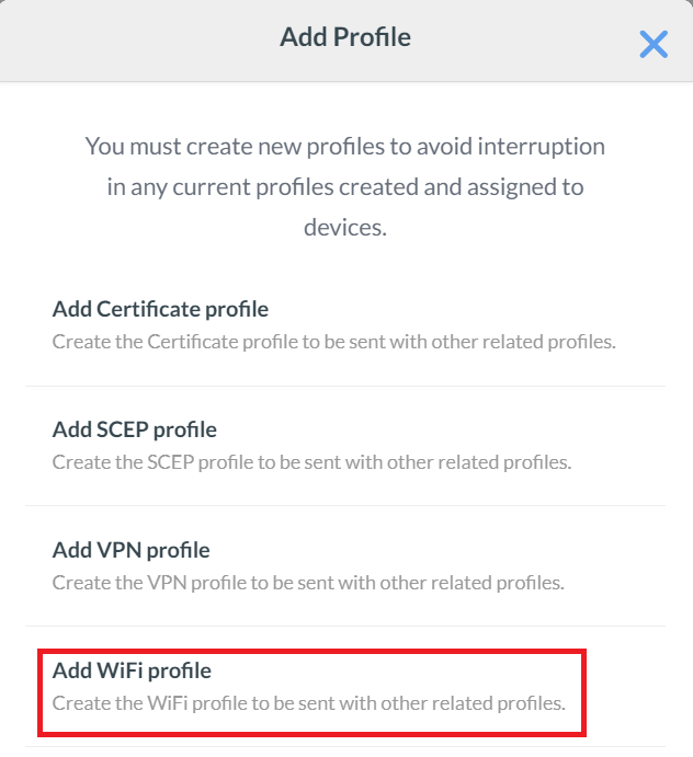 You can create a Wi-Fi profile in Mosyle with specific settings and assign it to users, devices, and groups.