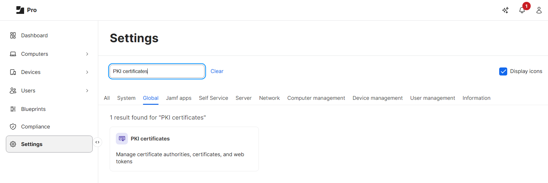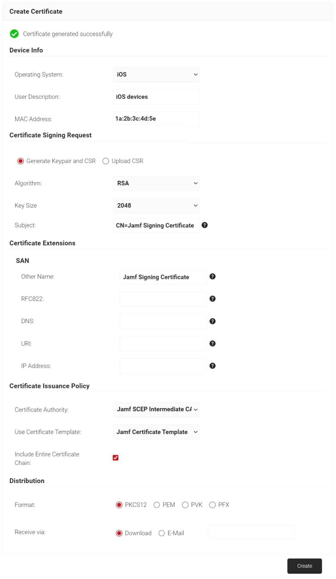 As a best practice, SecureW2 recommends having a new intermediate CA for JoinNow SCEP Gateway integration with Jamf. The CA that issues certificates to BYOD devices should be separate from the CA that issues certificates to managed devices because managed devices do not require email notifications. You can disable email notifications for the dedicated CA issuing certificates to Jamf-managed devices.