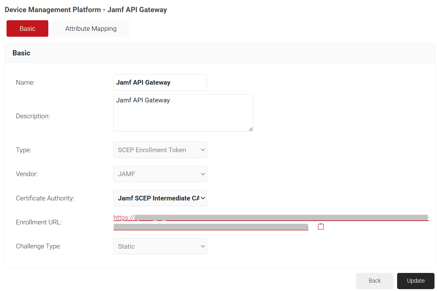 - Click the Attribute Mapping tab to configure the required attributes for SCEP and click Update.