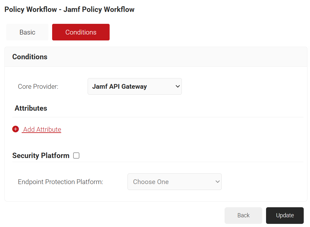 - Under the Conditions section, from the Provider drop-down list, select the management platform created in joinNow in the Creating a Device Management Platform section.