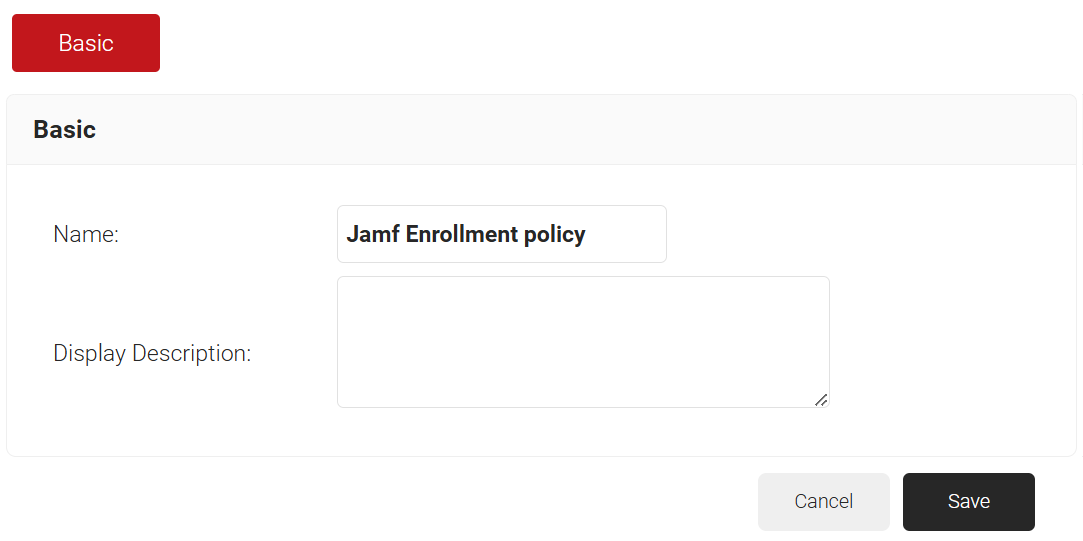 - In the Basic section, enter the name of the device management platform in the Name field.