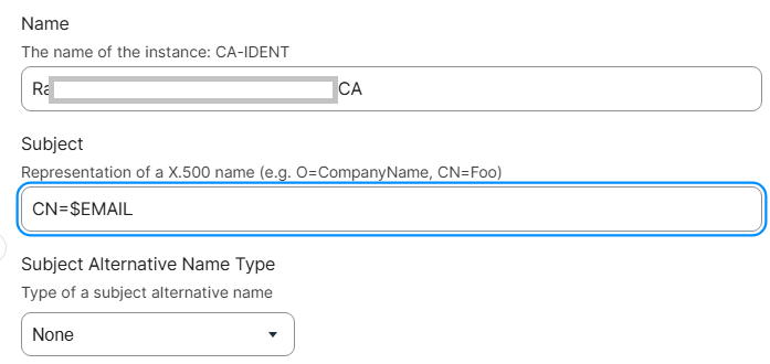 - In the RFC822 field, enter ${/device/userDescription:/csr/san/rfc822name}