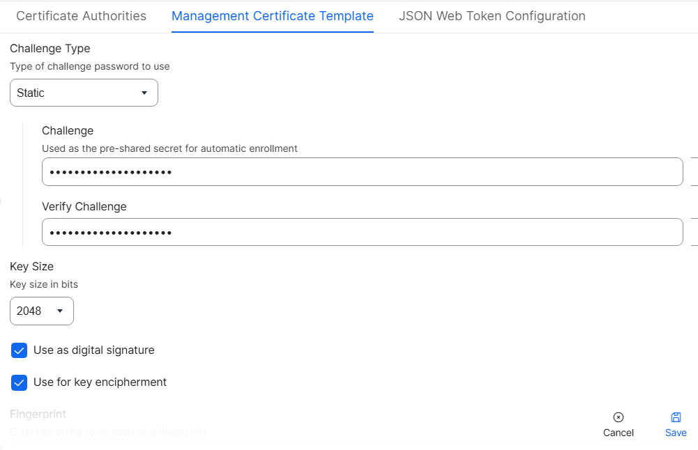 NOTE: You can also refer to the steps in Device Management Platform (SCEP Enrollment Token) in the JoinNow MultiOS and Connector Configuration Guide, which is available in the Management Portal.