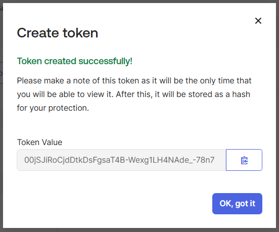 NOTE: Save this file securely. It is downloaded only once during token creation. If you lose it, you can not retrieve the secret.