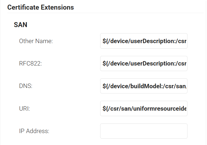 - In the DNS field, enter ${/device/buildModel:/csr/san/dnsname}