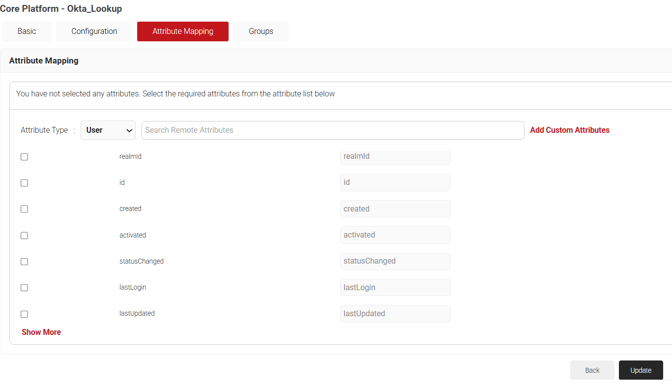 - From the Core Provider drop-down list, select the Okta Identity Lookup Provider created in the previous section (see the Creating a Core Platform section).