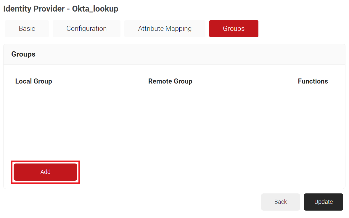 - In the Remote Group field, enter the name of your group as it is configured in the Okta portal.
