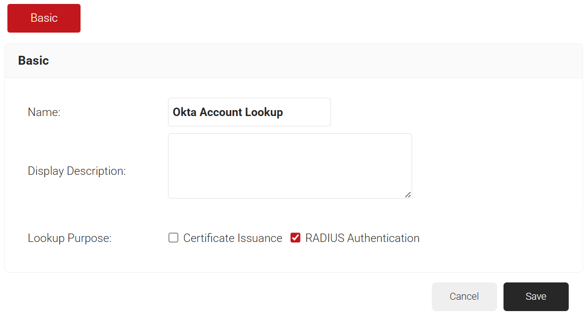 - In the Lookup Purpose field, select the RADIUS Authentication checkbox to add the policy to the RADIUS Authentication workflow.