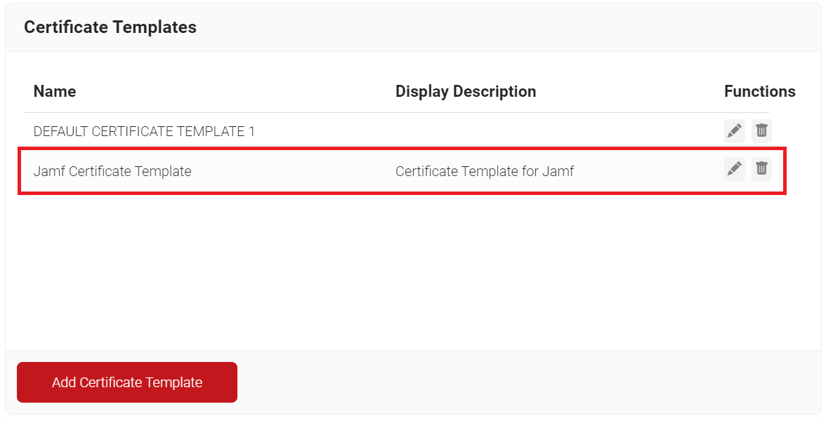 - Scroll to the Certificate Templates section and click Add Certificate Template.