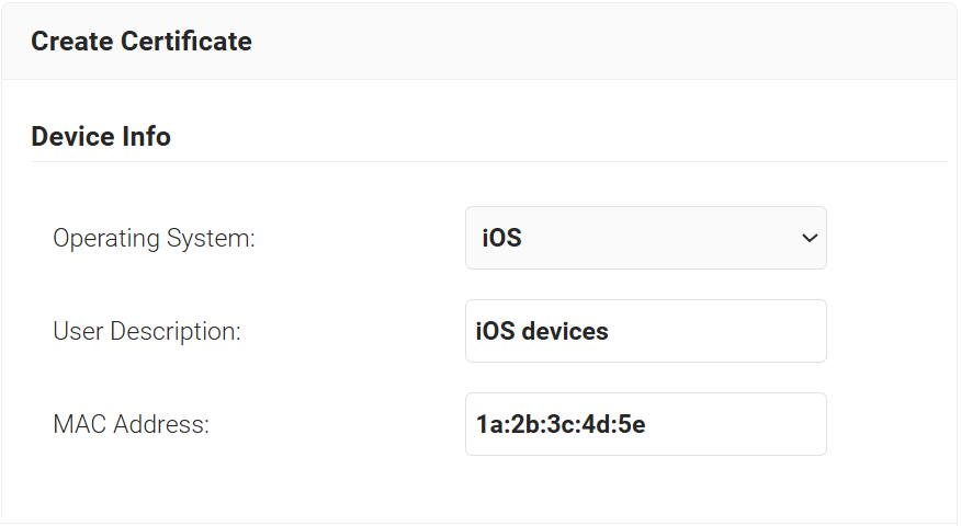 - In the Device Info section, from the Operating System drop-down list, select an operating system.