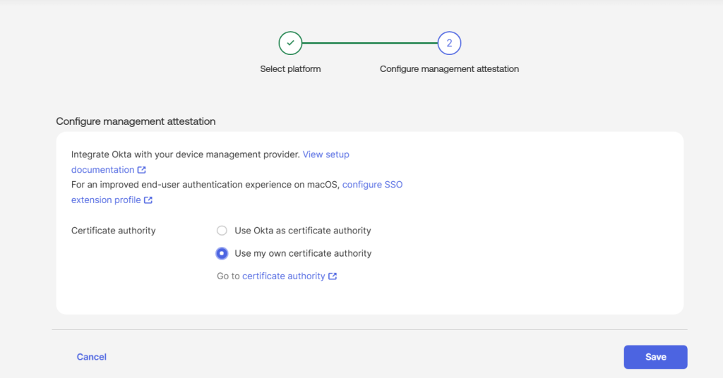 - Upload External CA in Okta
