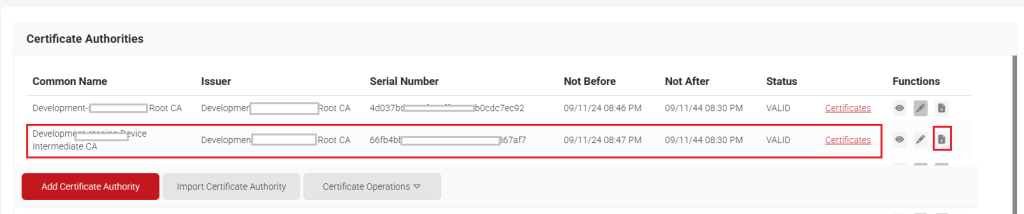 - Click Add Certificate Authority.