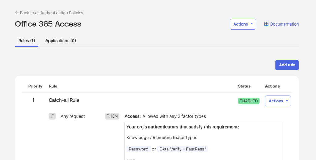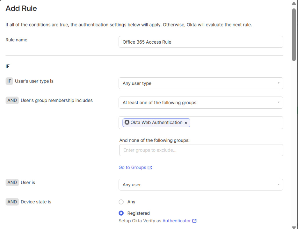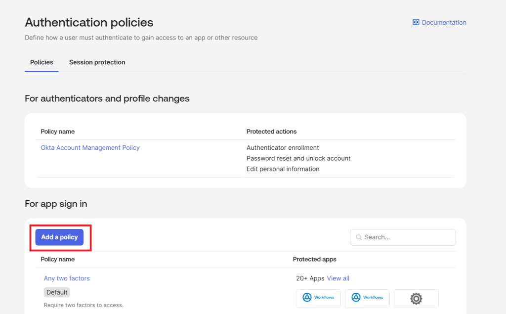 - Configuring Authentication Policy in Okta