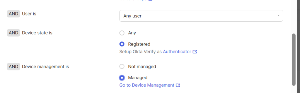 - In the And Device Management is section, click on the Managed option.