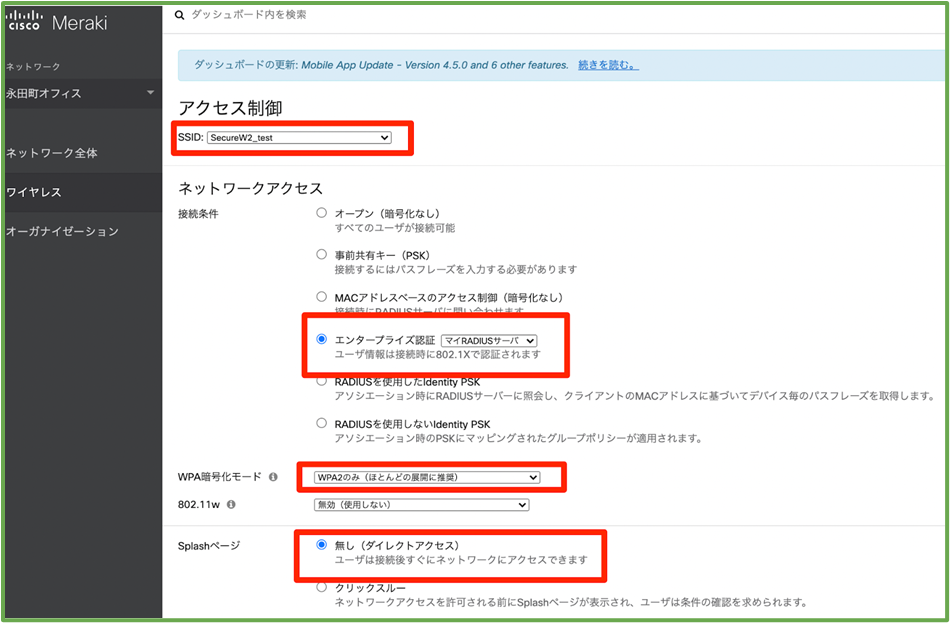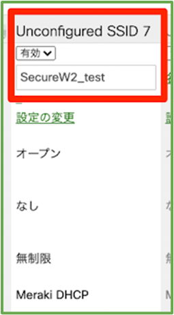 - Log in to the Meraki administration page, activate an unused SSID from the SSID list page, and give it a name. ( e.g. SecureW2_test ).