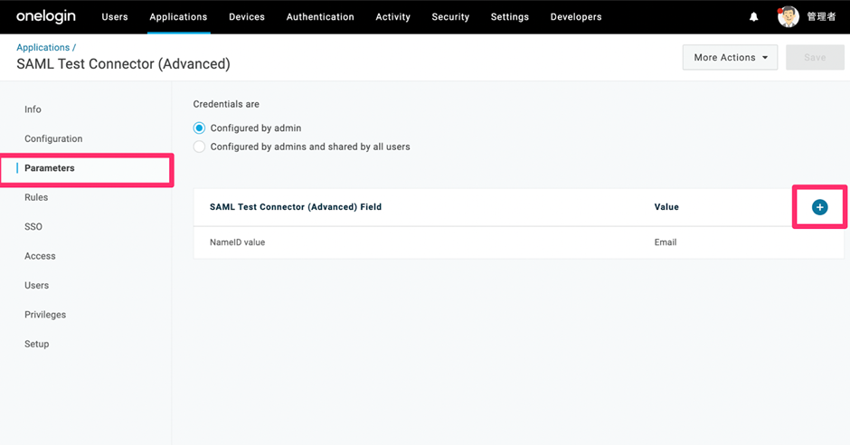 - Click the + icon on the right side to add the required fields for SAML