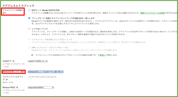 - Configure the IP address and traffic, IP assignment to client, override by RADIUS response.