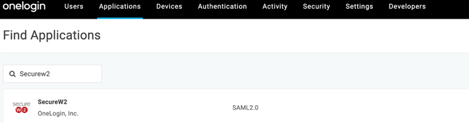 - In the search field, enter SecureW2 and select the SAML 2.0 app connector.