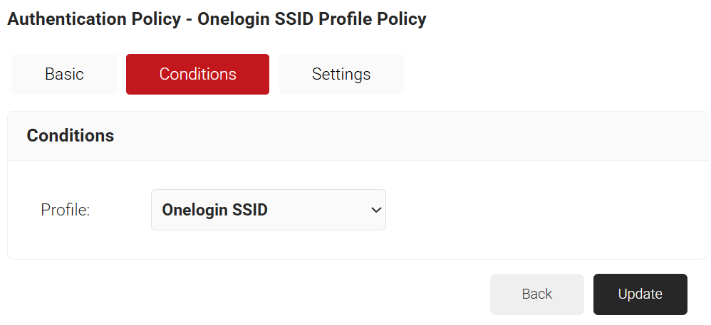 - Click the Conditions tab and make sure that your Network profile is displayed in the Profile field.