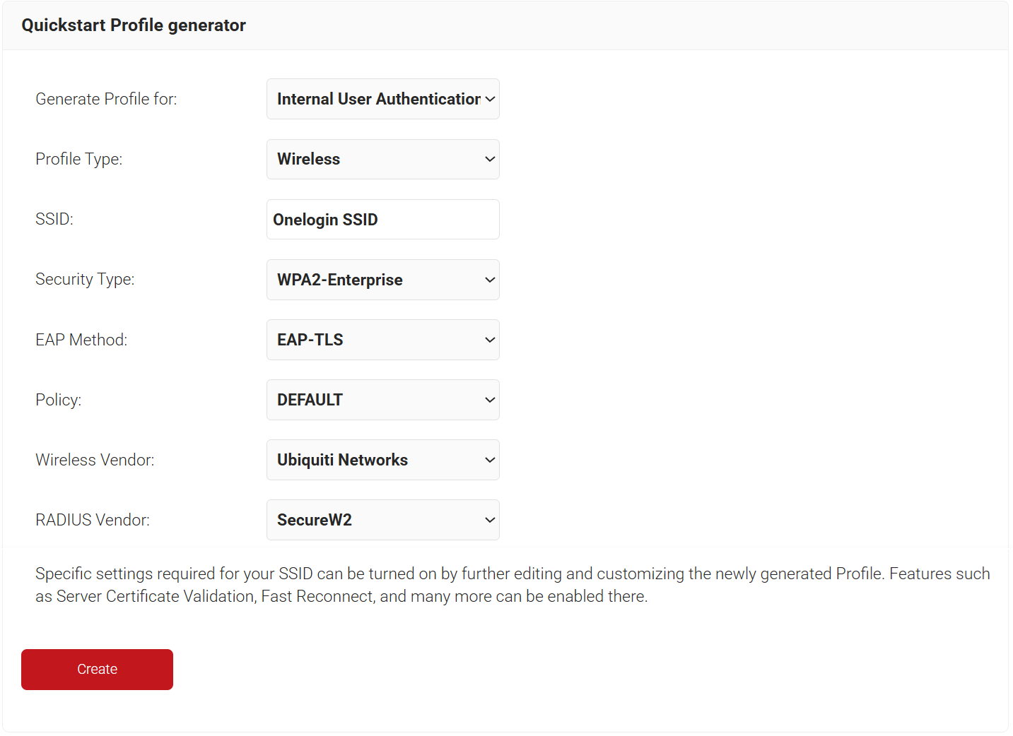- From the Generate Profile for drop-down list, select Internal User Authentication.