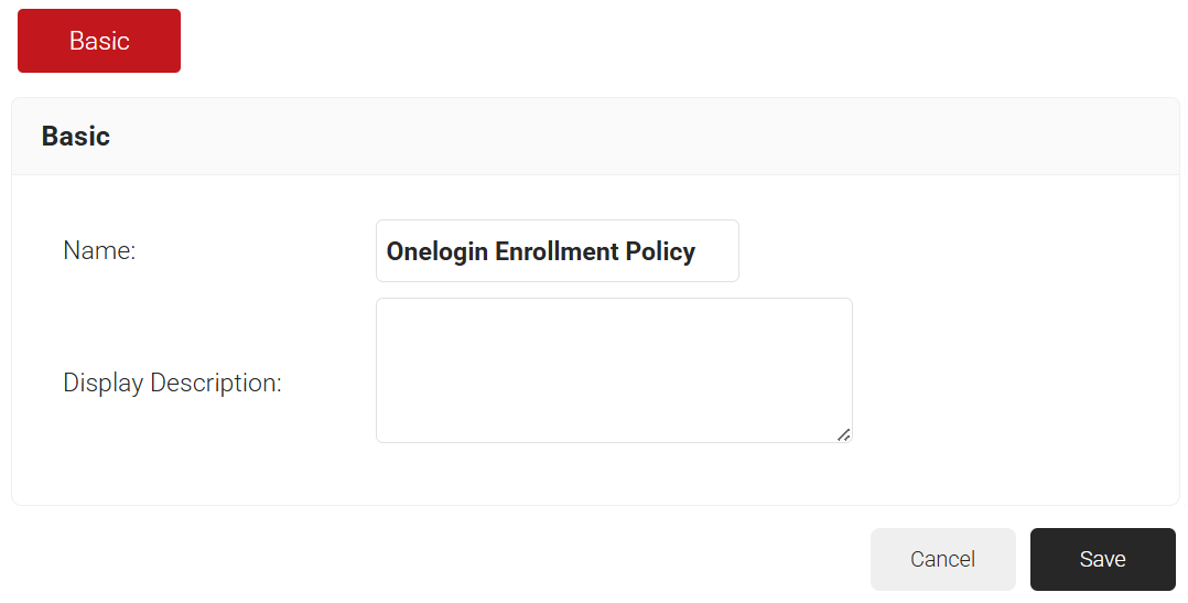 Enrollment policies specify which Certificate Authority (CA), Certificate Template, and other related settings are used during the enrollment process for a particular Policy Workflow. Here, we create a basic policy that allows us to enroll certificates for our OneLogin users.