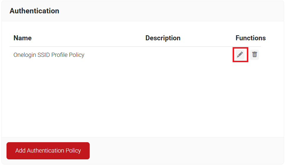 - On the Authentication page, click the Edit link for your network profile’s authentication policy.