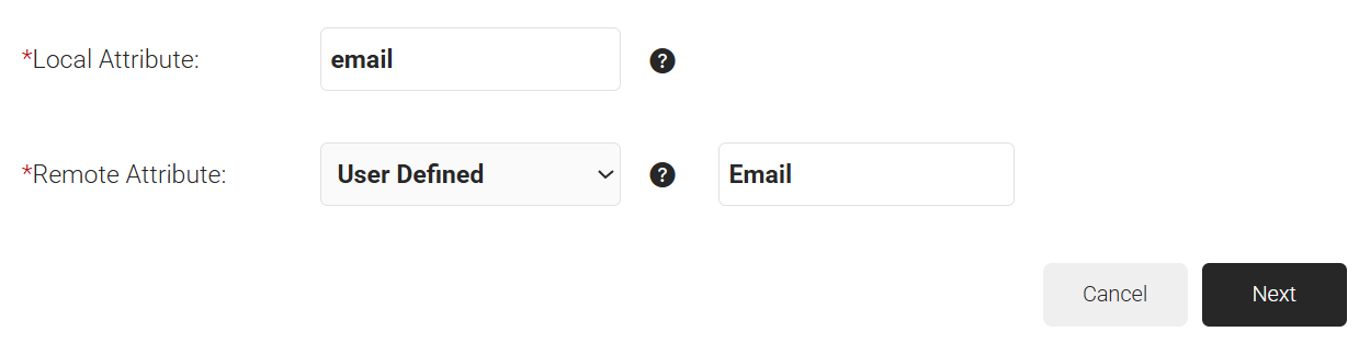 - In the Remote Attribute field, choose the user attribute received from the IdP. This is mapped to the local attribute.