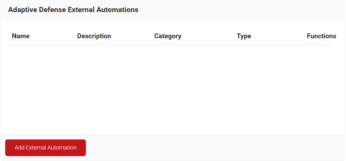 - Go to Integration Hub > Adaptive Defense External Automations.