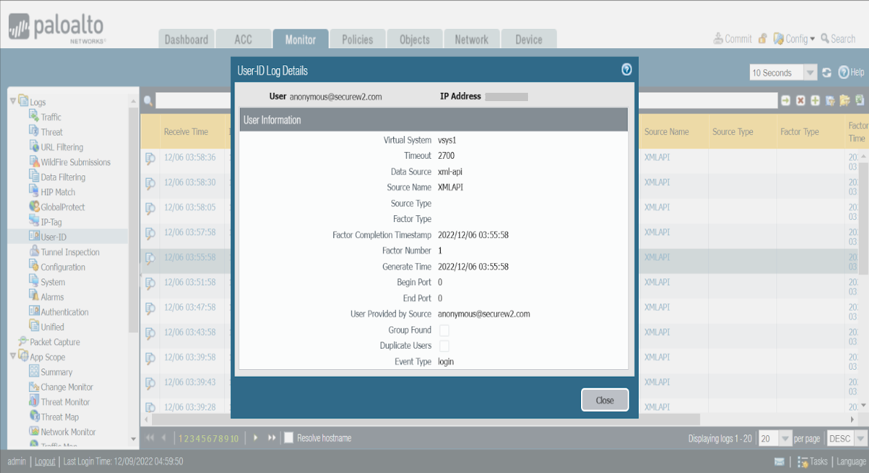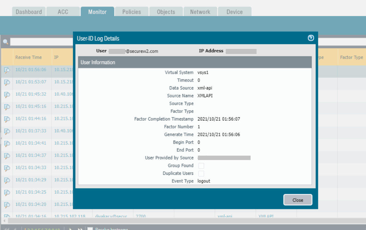 Here is a sample RADIUS Accounting event for Login and Logout sent to the Palo Alto Firewall for the above configurations.